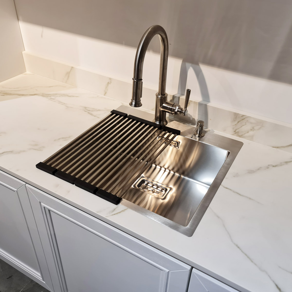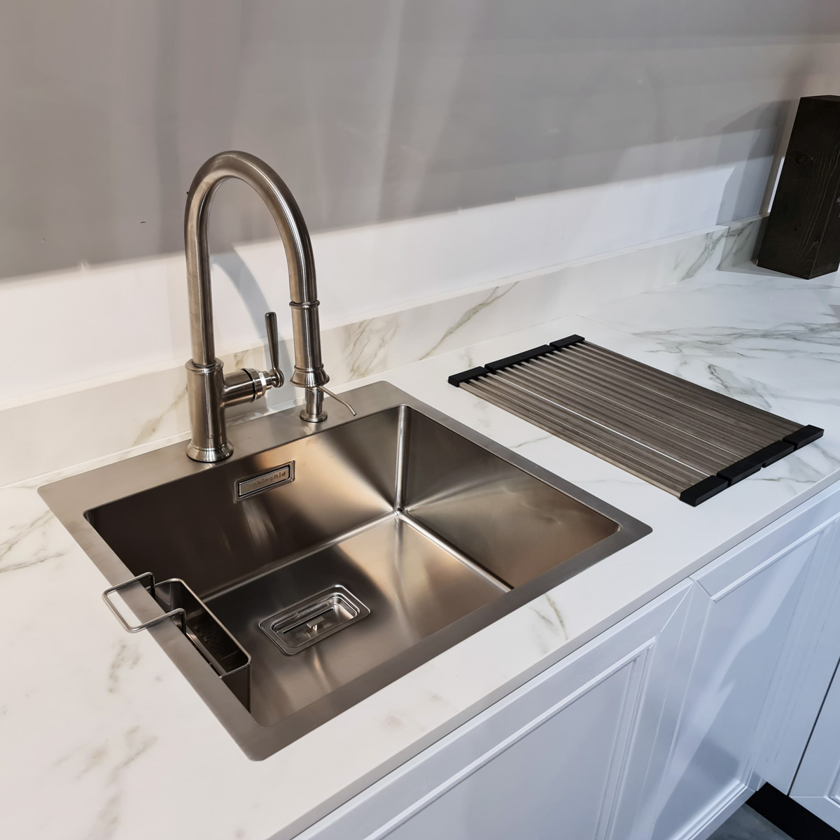 ***Bateria de bucatarie si suportul de farfurii / tacamuri Mini Exclusive prezentat langa chiuveta in imagini, nu sunt incluse ci sunt prezentate ca exemplu de montare a chiuvetei