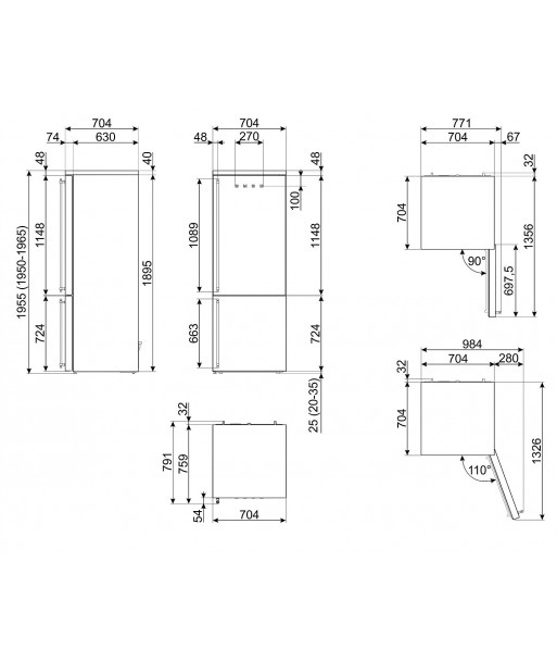 Adâncimea produsului cu ușile deschise la 90°:1356 mm
